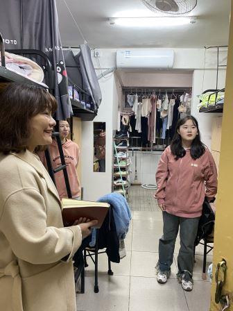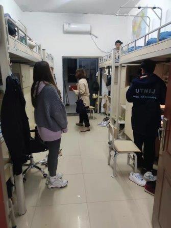 2月28日19:25,伟德国际victor1946党委副书记胡英带领辅导员刘艳霓检查了11栋学生公寓所有寝室门贴,对不合格者登记,并反馈给宿管部;走访2021级思政1班寝室、856思政班、857思政班寝室,重点了解学生最近学习情况,鼓励学生积极备考,参加各类国家考试,提升自身专业能力;检查各寝室用电安全及寝室卫生,对内务整理提出要求。