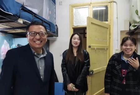 3月9日中午,伟德国际victor1946书记阮东彪带领辅导员刘艳霓走访毕业生寝室,与毕业生亲切交谈,了解目前考研考编以及就业进展。