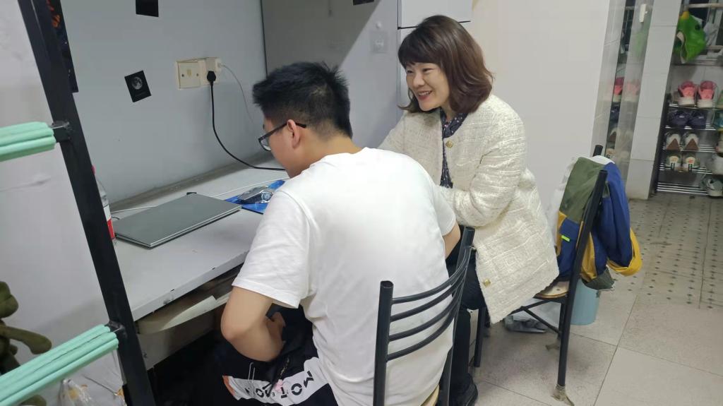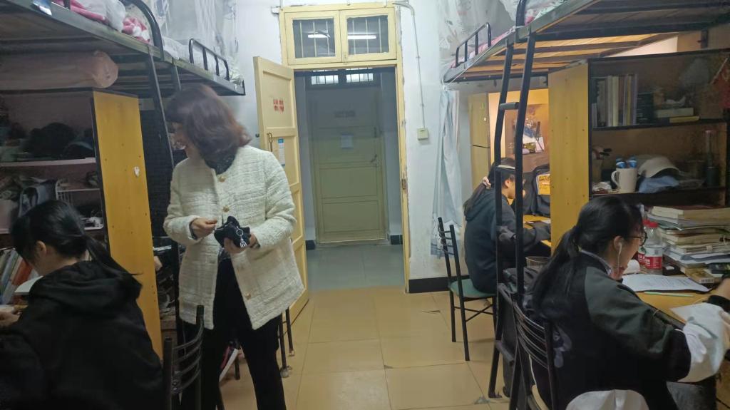 3月17日晚,伟德国际victor1946党委副书记胡英走访了女生寝室11栋和男生寝室13栋,看望大一学生,与学生谈心,了解学生学习生活情况,同时督促同学们严格遵守学校疫情防控政策要求,寝室每天通风,保持整洁,并且要及时做好消杀工作。
