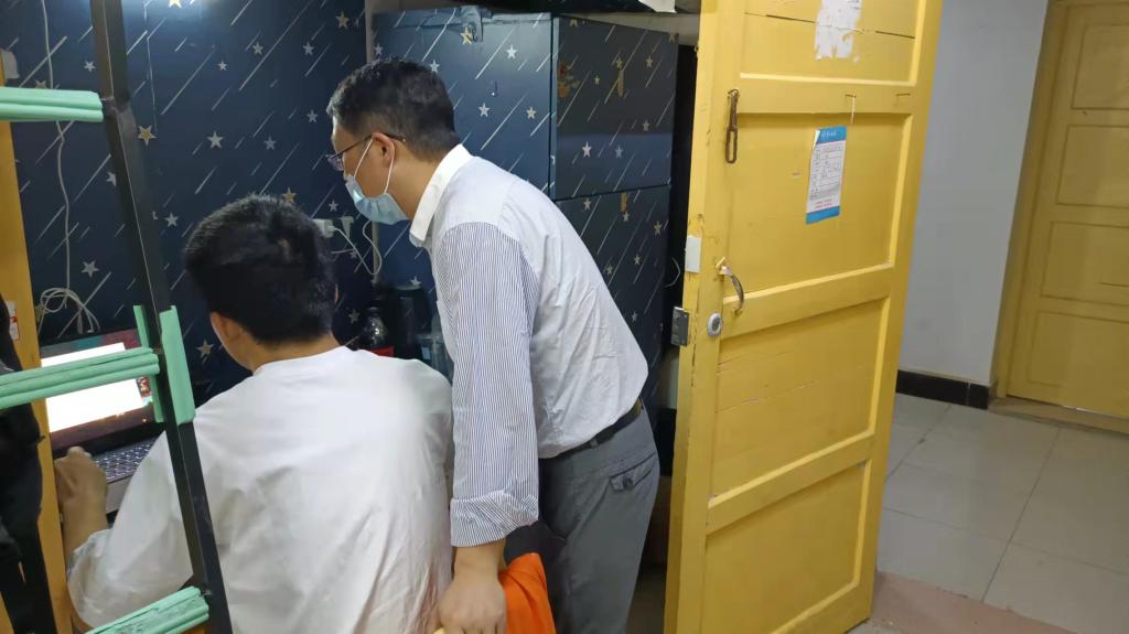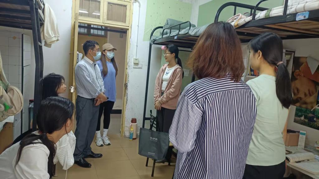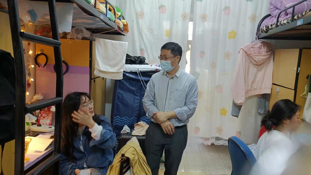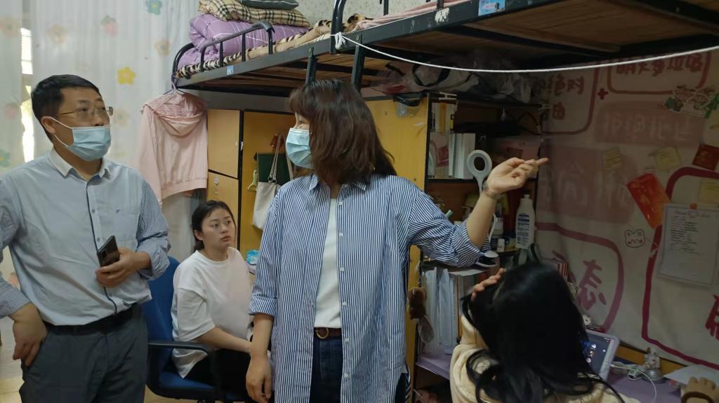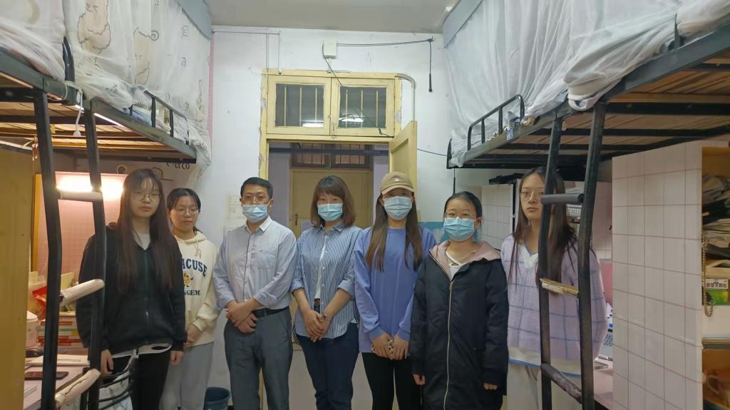 4月9日上午,为加强疫情防控期间学生线上学习管理,保证教学质量,伟德国际victor1946党委副书记胡英、副院长王竹苗、学工办刘艳霓走访了11栋女生寝室和13栋男生寝室,检查学生网课学习情况,了解学生网课学习的存在问题,提醒同学们要克服困难,增强自我约束力,提升网课学习效果。亲切询问同学们是否有困难,有哪些困难需要学院帮助解决。每到一个寝室,老师们都提醒学生们每天开窗通风,注意寝室卫生,增强日常锻炼,每天早睡早起,保障网课学习期间的身心健康。
