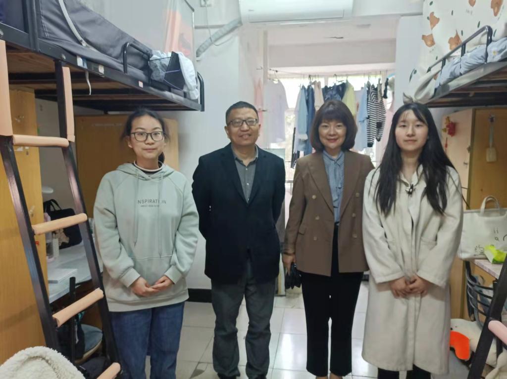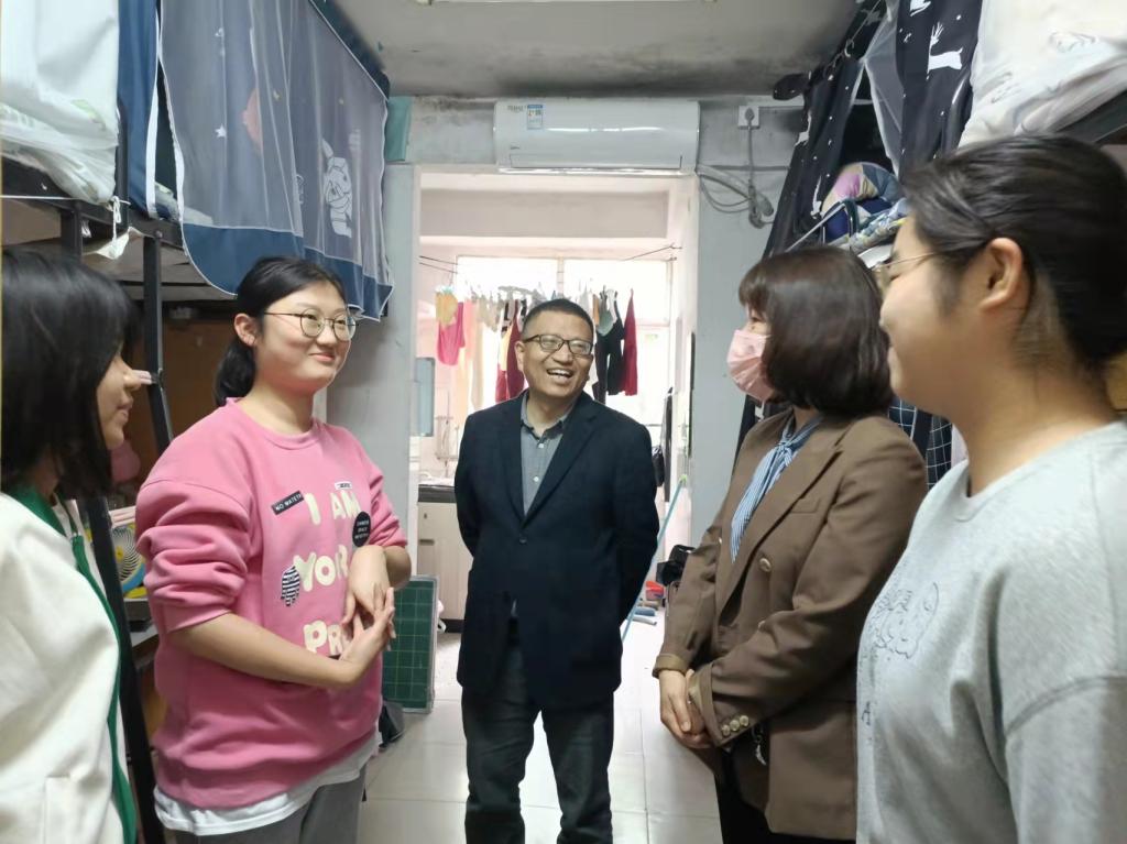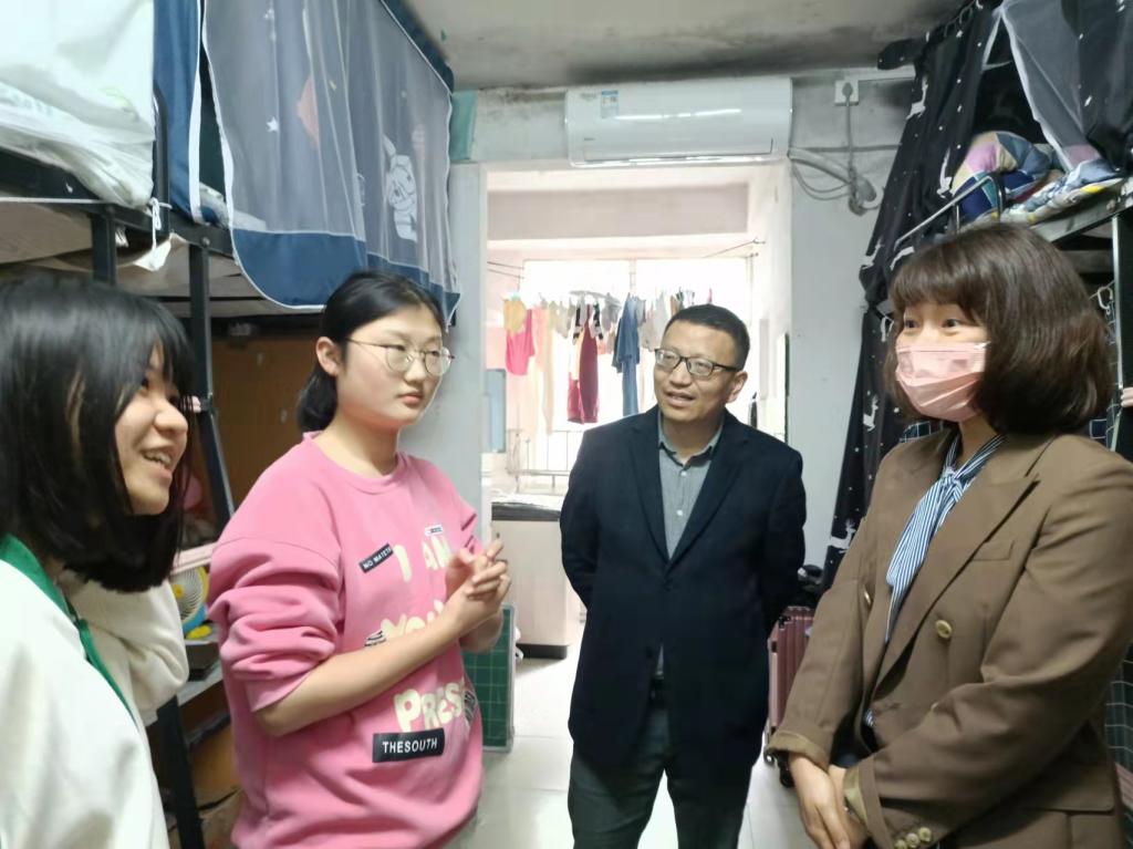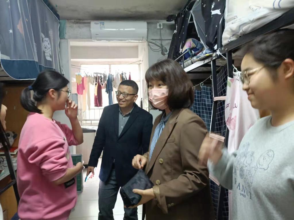 4月29日下午,伟德国际victor1946党委书记阮东彪、党委副书记胡英、学工办刘艳霓走访了11栋学生宿舍。与同学们亲切交谈,就学业情况进行了深入交流,鼓励同学们勤勤恳恳地学习好专业基本知识,扎扎实实地掌握好教学实践技能,多多参与各类技能竞赛与活动,不断提升自己,同时在此基础上也要切实保证自身作息时间与饮食规律,劳逸结合,要走出宿舍、走进操场,积极进行体育锻炼。