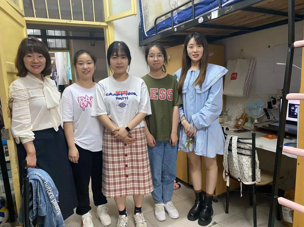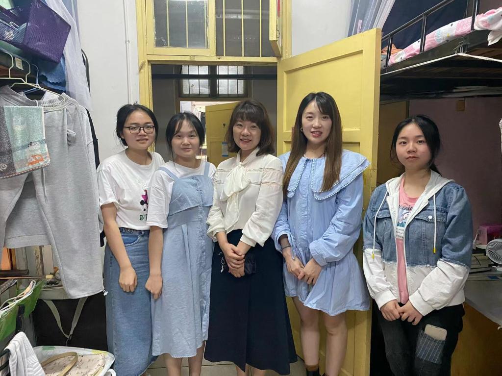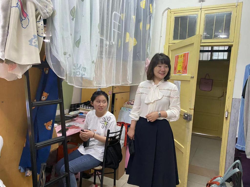 5月25日下午,伟德国际victor1946党委副书记胡英带领学工办刘艳霓老师到11栋女生宿舍看望同学。针对寝室卫生进行了细致检查,督促同学们按时通风,保持寝室整洁干净;叮嘱同学们期末临近,要制定合理的复习计划,提高学习效率,做好充足准备备考四六级和期末考试。