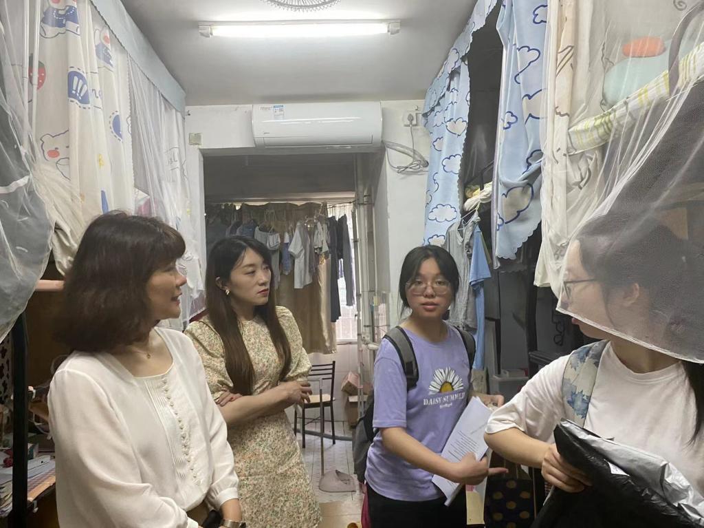 6月2日下午,伟德国际victor1946党委副书记胡英带领辅导员刘艳霓来到11栋学生寝室看望端午假期留校同学,叮嘱同学们留校期间要遵章守纪,按时作息,保持寝室卫生,注意防火安全、用电安全和自身安全,抓紧时间做好期末复习,同时祝同学们假期愉快。