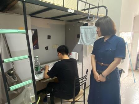 6月9日下午三点,伟德国际victor1946党委副书记胡英带领辅导员刘艳霓来到13栋男生寝室检查内务情况,鼓励大家要提高自理、自立的能力,养成良好的生活习惯。提醒大家合理安排期末复习时间,保持良好心态,以积极的态度应对期末考试。