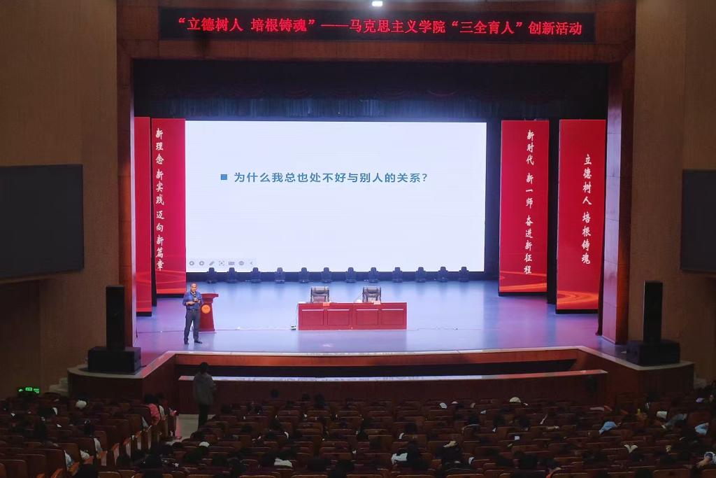 11月13日晚,伟德国际victor1946在田汉剧院举办了一场以“谁的大学不迷茫”为主题的大学生心理健康教育讲座。本次讲座是学院“三全育人”创新活动的重要组成,旨在帮助同学们建立健康的心理状态,提升心理素质,培养高尚品德,为未来的学习和生活奠定坚实基础。校学工部副部长禹晗、院党委书记阮东彪、院长陈明、副书记胡英和全体辅导员出席,学院大一、大二、大三近千名学生在场聆听讲座。