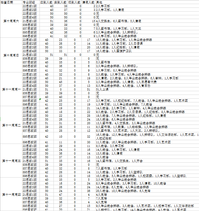 一日之计在于晨,科学依据表明早晨的记忆效果是最好的。所以,早读能让同学们达到很好的学习记忆效果。为了更好地了解同学们的学习情况,在此对大家过去一周的早读情况进行汇总如下:
