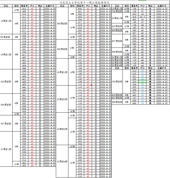 宿舍既是同学们生活,学习,休息的地方,又是学生交流思想,培养综合素质的重要活动场所。为了同学们有个良好的宿舍环境,学校认真严抓的,在此希望每位同学都能认真打扫好寝室卫生,以下就是第十一周公寓检查基本情况: