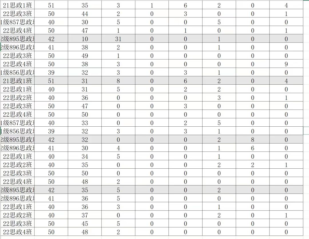 总结: 在本次青年大学习,20思政1班、21思政1班、21级856班、22思政1班、22思政3班、22级895班、22级896班学习率达到了100%,在这里提出表扬;