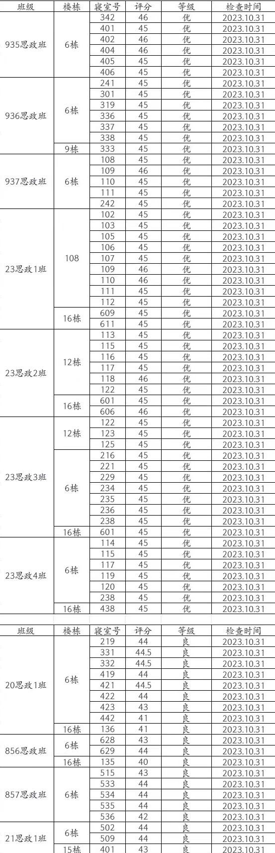 马院第九周公寓检查情况