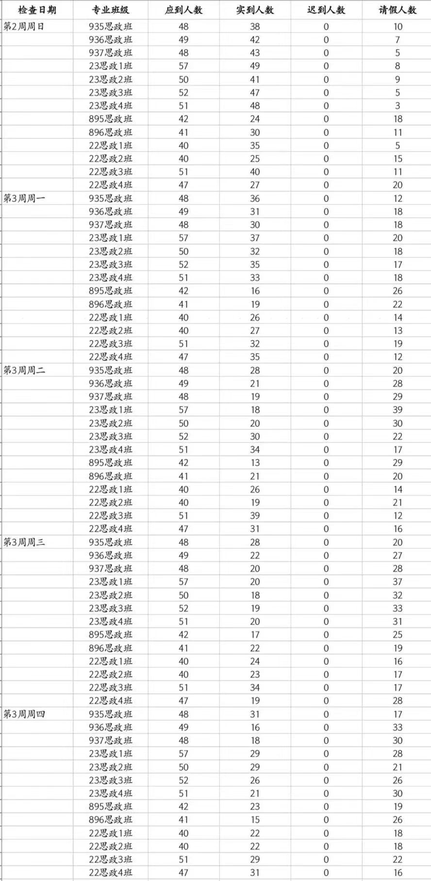 马院第三周晚自习检查情况