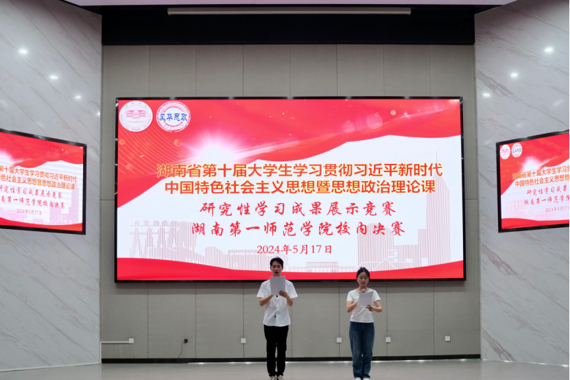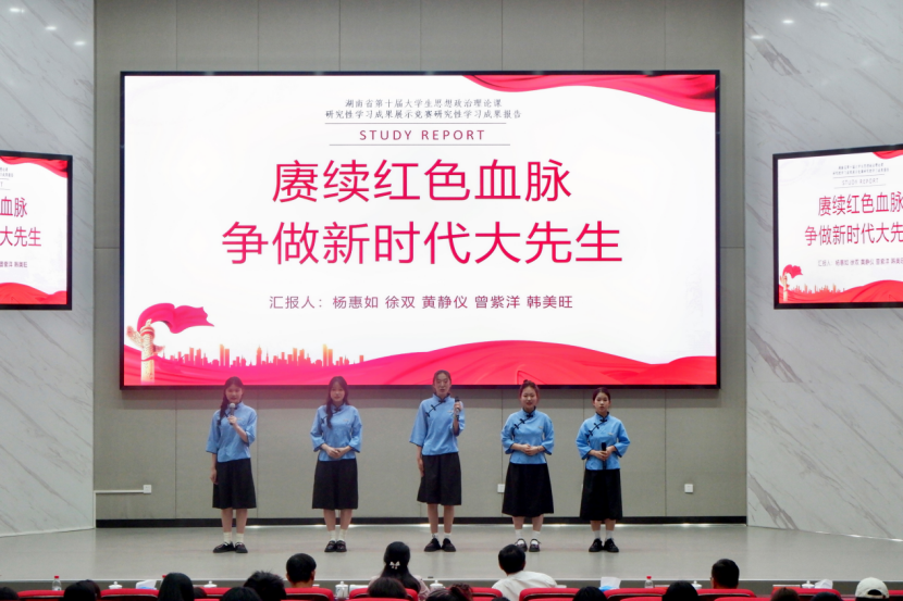 为全面推动习近平新时代中国特色社会主义思想进教材进课堂进头脑,我校于2024年5月17日晚在百熙楼228报告厅顺利举行大学生学习贯彻习近平新时代中国特色社会主义思想暨第十届思想政治理论课研究性学习成果展示竞赛决赛。此次比赛特别邀请了中南大学曹清燕教授、长沙理工大学张明海教授、湖南科技大学唐小芹教授担任评审专家,我校伟德国际victor1946党委书记阮东彪、伟德国际victor1946院长陈明、伟德国际victor1946副院长王竹苗、胡慧娥以及各小组指导老师和参赛学生参加活动。