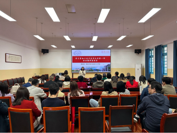 全体教师在解说员的引领下先后参观了大礼堂、纪念馆、第八班教室、第八班寝室、城南古井……沿着习近平总书记的考察足迹开展现场学习,了解毛泽东等老一辈无产阶级革命家在一师求学、立志、报国的故事。随后,在学院开展的“学习贯彻习近平总书记考察一师讲话精神座谈会”上,在现场聆听了总书记讲话的陈明院长和刘喆老师分别和大家介绍了总书记考察我校的情形及发表的重要讲话精神,分享了自己的感受和体会。
