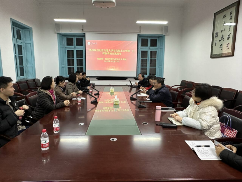 12月13日,北京交通大学伟德国际victor1946一行11人莅临我校调研交流,我院党委书记阮东彪,副院长王竹苗、胡慧娥热情接待,教研室主任、教师党支部书记、教师代表以及毛泽东与第一师范纪念馆颜蒹葭老师积极参加。