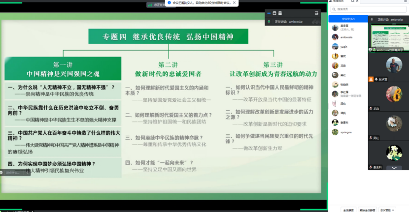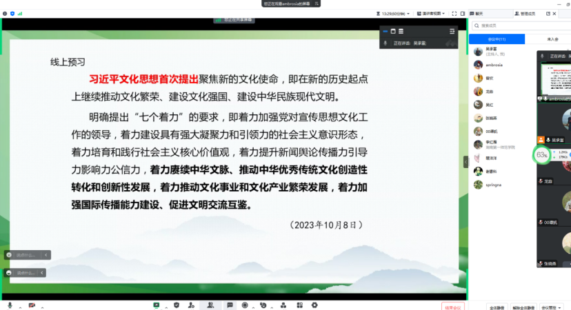 10月9日,我院“思想道德与法治”教研室积极响应学校“深化本科教育教学,全面提高人才自主培养质量”的号召,精心开展线上集体备课活动。备课会由教研室主任吴承富老师主持,教研室全体成员参加。