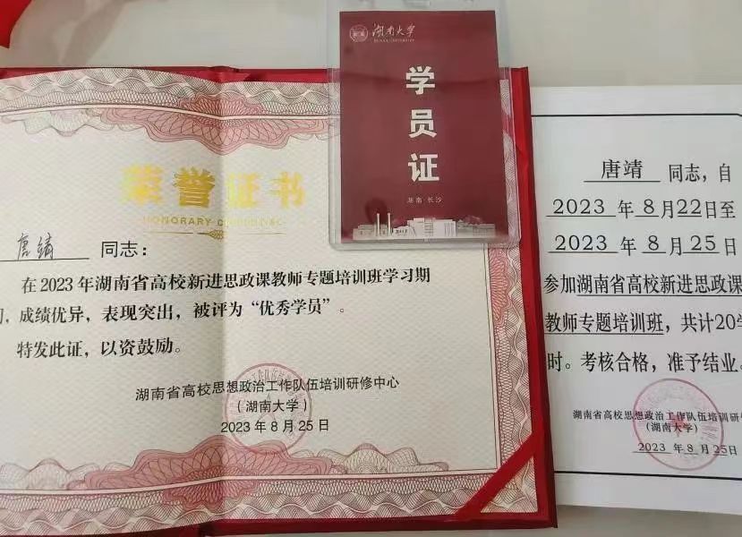 “我2013年9月进入伟德victor1946学习,在校期间担任过班级文娱委员、系部文艺部干事,还加入学校青年志愿者协会、红色学坛等社团组织。有幸在大学期间遇到了很多好老师,陈明老师、阮东彪老师还有马院很多老师们,他们用自己的一言一行以及人格魅力深深感染了我,不仅教给我们知识,也教我们如何读书做人。我本科毕业后考取研究生,进入广西民族大学攻读马克思主义基本原理专业,在校期间发表省级刊物一篇。现就职于湖南劳动人事职业学院担任思政教师,在思政课教师岗位上曾获得‘新进教师讲课比赛一等奖’‘湖南省新进思政课教师专题培训优秀学员’。”